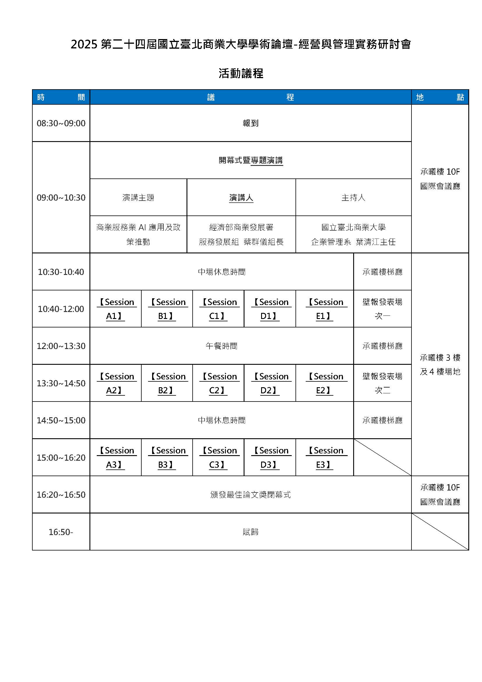 【研討會】2025國立臺北商業大學學術論壇-經營與管理實務研討會審查結果公告